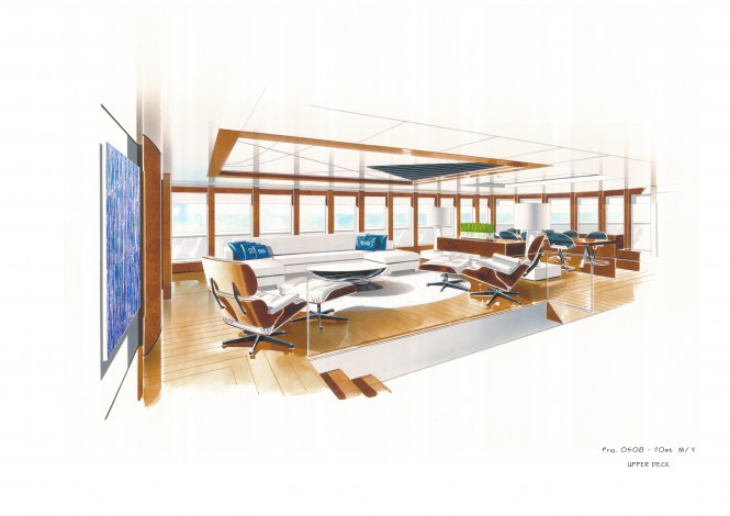 The yacht’s interior was originally created by Ken Freivokh and further developed by Michela Reverberi, who was also in charge of the interior decoration and styling.