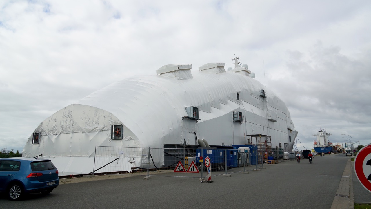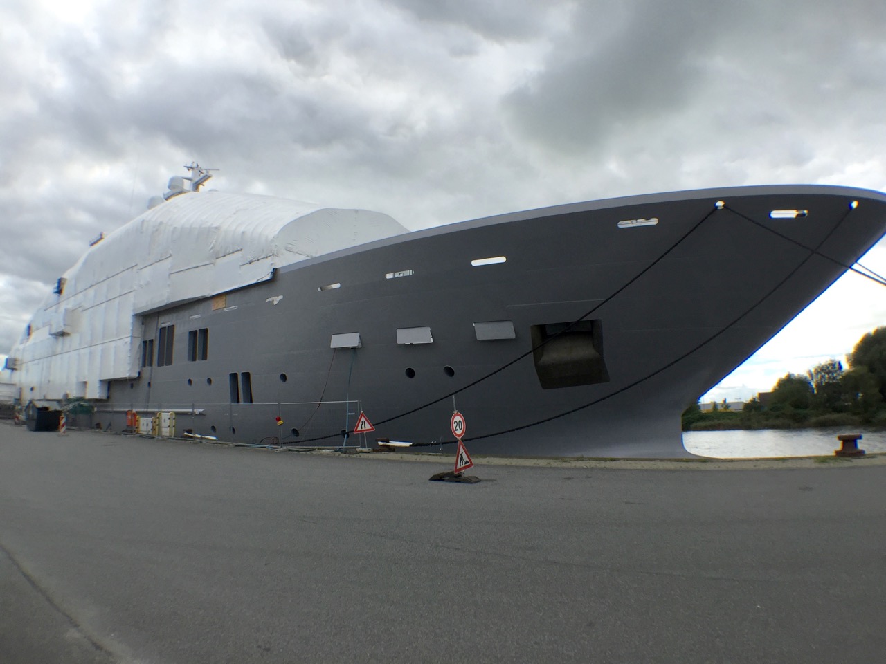 The mighty 107-metre explorer mega yacht ULYSSES (hull 366) was spotted in Germany’s Bremerhaven by ‘DrDuu’. Currently undergoing her final outfitting, the impressive motor yacht ULYSSES will be completed by the Stahlbau Nord Shipyard, the builder of the equally imposing 115m superyacht LUNA.