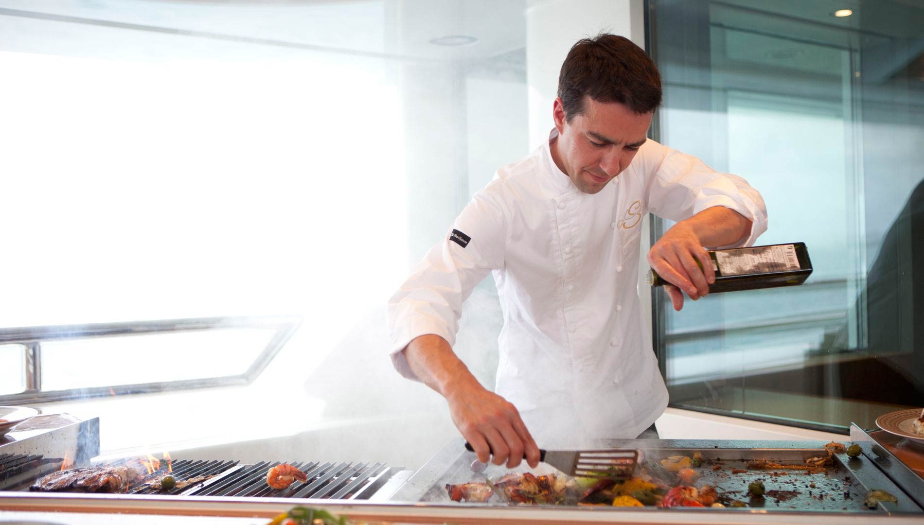 With 3 exterior levels, M/Y LADY E has numerous options for entertaining and relaxing. The shaded aft deck boasts a large seating area and teak tables, her upper deck aft has alfresco dining and sitting areas, this space is partially shaded. The sundeck impresses with a jacuzzi, sun pads, alfresco dining and centralized fitness gym. For the water enthusiasts, there are a plethora of the latest aquatic toys to chose from, each easily accessed from the extended swim platform. In addition to the great assortment of water toys, the Amels boasts a custom built Serenella limo tender, plus 3 further tenders, ensuring that charter guests can enjoy the lovely seas of Asia.