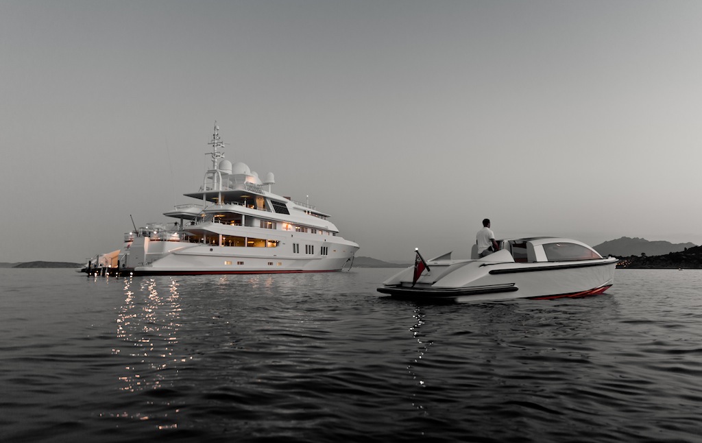 The upper deck hosts the forward VIP stateroom, which has its own en-suite bathroom and lounge, while across the corridor is a comfortable and spacious media lounge that can be separated off from the rest of the guests to create a quiet sanctuary. Behind, there is a beautifully appointed skylounge with two large seating areas an a bar. Full-height glass sliding doors on the port and starboard sides, as well as the aft, connect guests to their surroundings, while out on deck there is a marvellous dining table to seat up to 12 guests in the shade as well as two sun pads for resting on and taking in the views after a lavish meal.