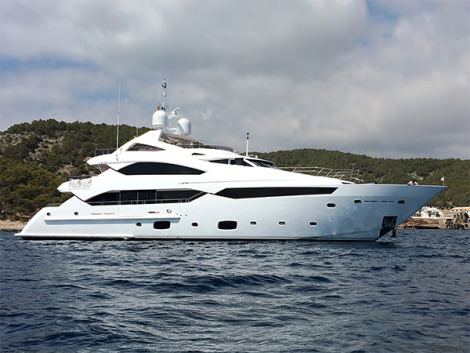 Sunseeker 40 Metre Yacht THUMPER can comfortably sleep up to 12 guests across 5 generous en-suite cabins, including a full-beam main deck master stateroom, two double guest cabins and two twin guest cabins with Pullman bunks. Moreover, there is space for up to 9 crew, including a separate Captain’s cabin off the wheelhouse.