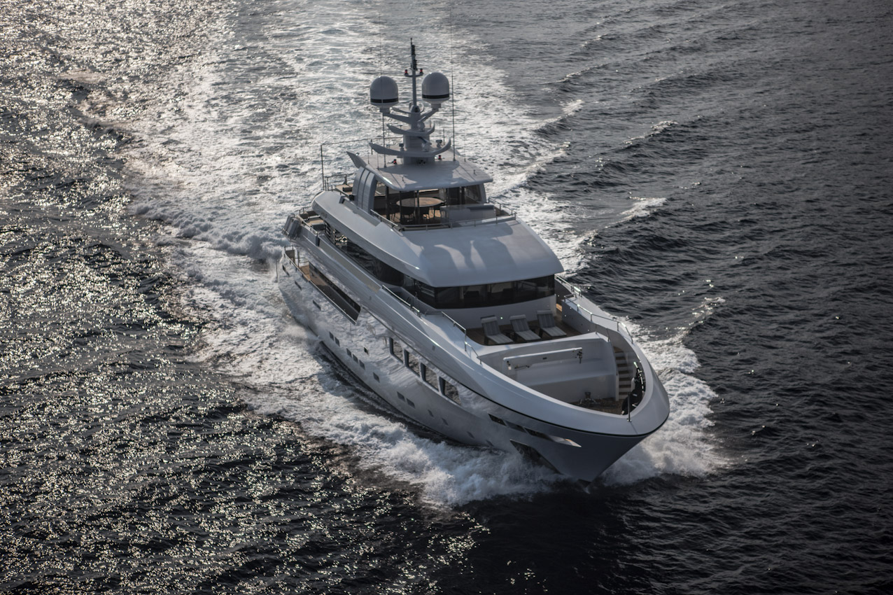 OKKO superyacht is capable of reaching a maximum speed of 16 knots, a cruising speed of 14 knots and a range of 3.000 miles at 12 knots. Absence of vibration, high-tech soundproof solutions and total reliability and comfort are all paramount attributes that enhance the quality of life aboard of OKKO and that worldwide have always defined MONDO MARINE as the Italian synonym for ‘excellence at sea’.