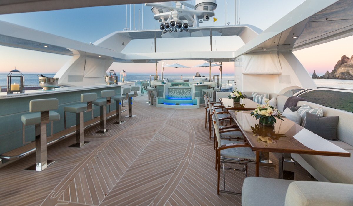 Exterior living spaces are ideal for both formal occasions and relaxation. The alfresco dining area is located on the main deck aft.