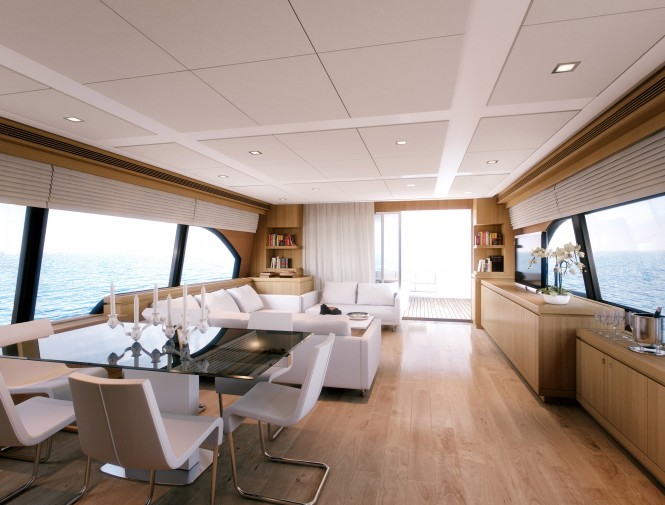 Navetta 26 Crescendo SuperYacht, natural development of the previous maxi-yacht in the semi- displacement line, is the result of the close working relationship between Studio Zuccon International Project, the Ferretti Group’s AYT – Advanced Yacht Technology naval research and design centre, and the team of architects and designers at the Centro Stile of Ferretti Group.
