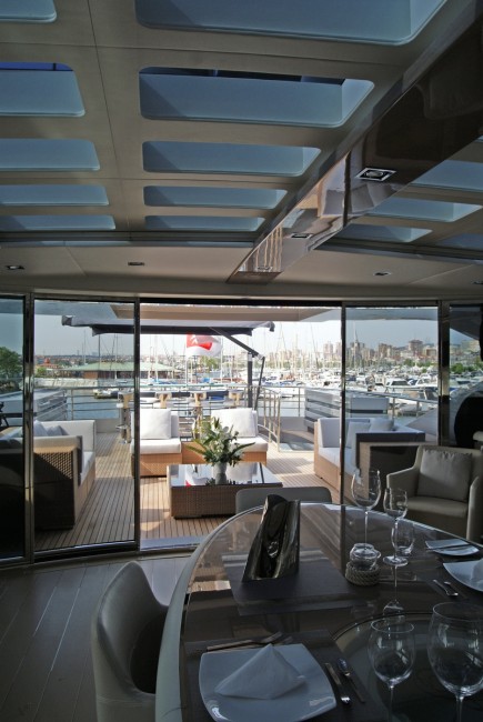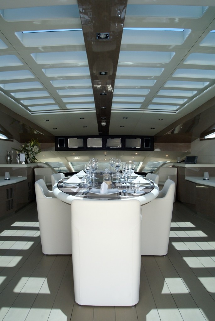 The interior project and styling, realized by the Italian “Hot Lab yacht & design studio” calls to mind a warm minimal taste reinterpreted with clear modern elements. The studio was involved in the entire project and construction since day one.