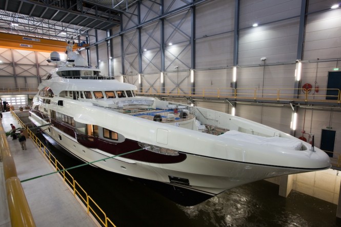 Motor Yacht Quinta Essentia at her launch – Yacht’s colour scheme by Dobroserdov Design – Image credit to Emilio Bianchi