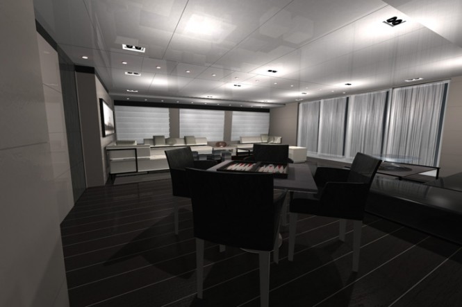 On board she offers a large space for relaxing and entertainment. The sun-deck is an ideal place for winding down, with a Spa Pool, large sun-beds, bar and seating area. The al-fresco dining area is situated on the upper aft deck, while the main aft deck hosts another seating area.