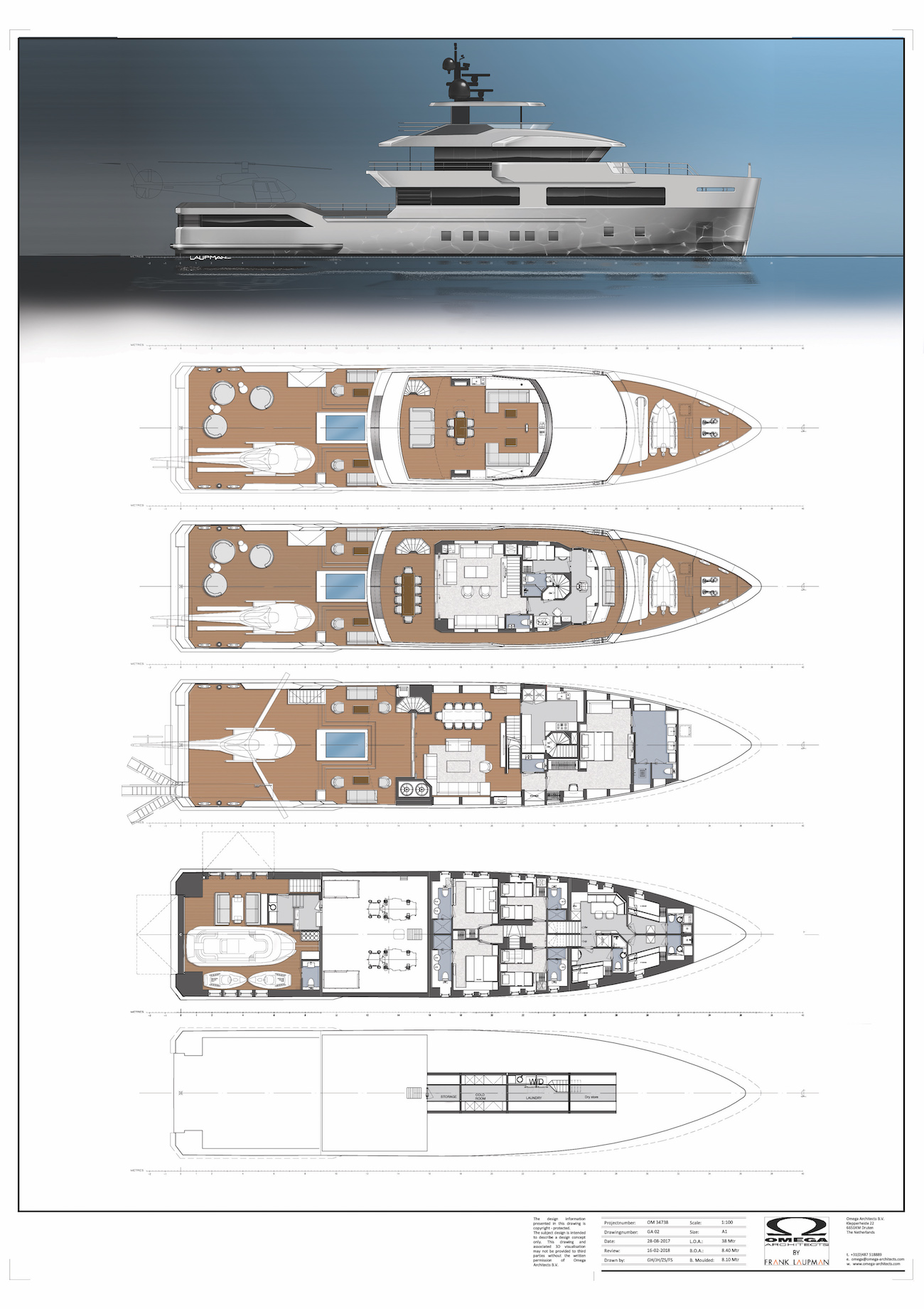 “We consider a yacht as the unity of exterior and interior,” commented Frank Laupman. “A holistic approach where all elements of the yacht are intimately interconnected and explicable only by reference to the whole.”