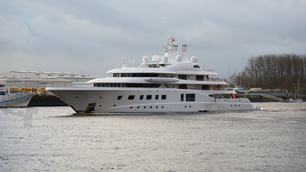 104m mega yacht QUANTUM BLUE arriving at Lurssen - Photo by DrDuu