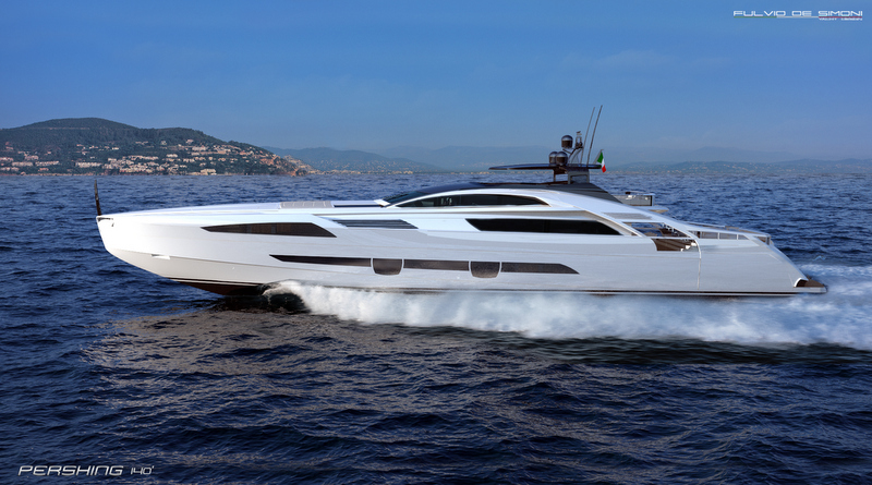 The all-new motor yacht Pershing 140 represents the flagship of Pershing Yachts, part of the Ferretti Group. Luxury superyacht Pershing 140 sports an aggressive and streamlined profile, thanks to a new hull and a new design, developed by Ferretti Group Engineering Department and Fulvio De Simoni. She is the first Pershing to be built in light alloy. A great video showing this beauty can be found here.