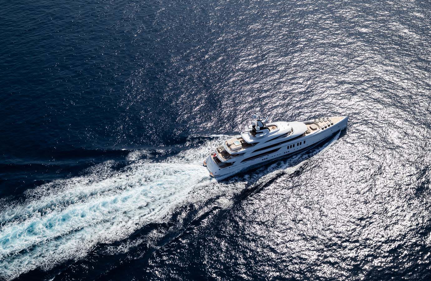 Indulgences are everywhere, with a large, contemporary selection of water toys to complement her status as an Approved RYA Water Sports Centre, a children’s playroom, cinema, beach club with pool, a wellness centre comprised of a beauty salon, massage room, sauna and hammam, a sundeck with fireplace, humidor and wine cellar, plus a bridge deck Master suite with private Jacuzzi and a second Jacuzzi on the upper deck aft.