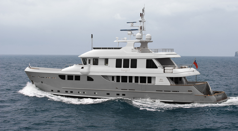 Luxury yacht Tango 5 is built to BV classification, which requires compliance with stringent construction standards and involves a multitude of classification surveys to ensure an extremely safe and high degree of seaworthiness. She also features a steel hull that renders her ideal for worldwide cruising, even in remote locations, and incorporates an array of global travel-approved equipment such as ABT bow/stern thrusters; ABT zero speed stabilizers; two 50KW generators; watermaker; custom Furuno navigation package; forward davit; tender.