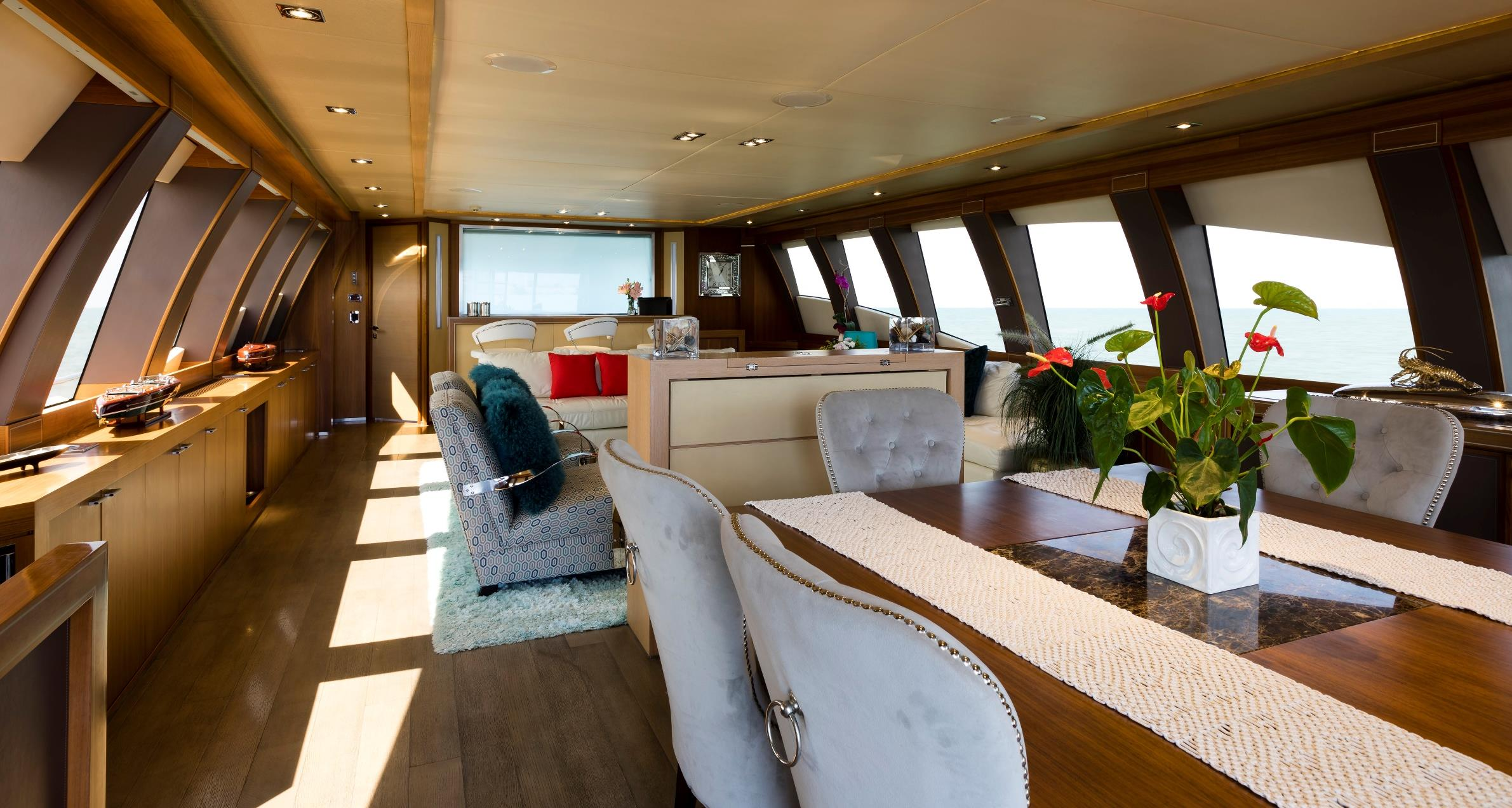 When you feel like pampering yourselves and shutting out the rest of the world, M/Y BAGHEERA has everything on board that you could possibly desire: Top quality entertainment systems a sumptuous modern lounge with a wet bar, baby grand piano and intimate formal dining area, all within warm and inviting interiors.