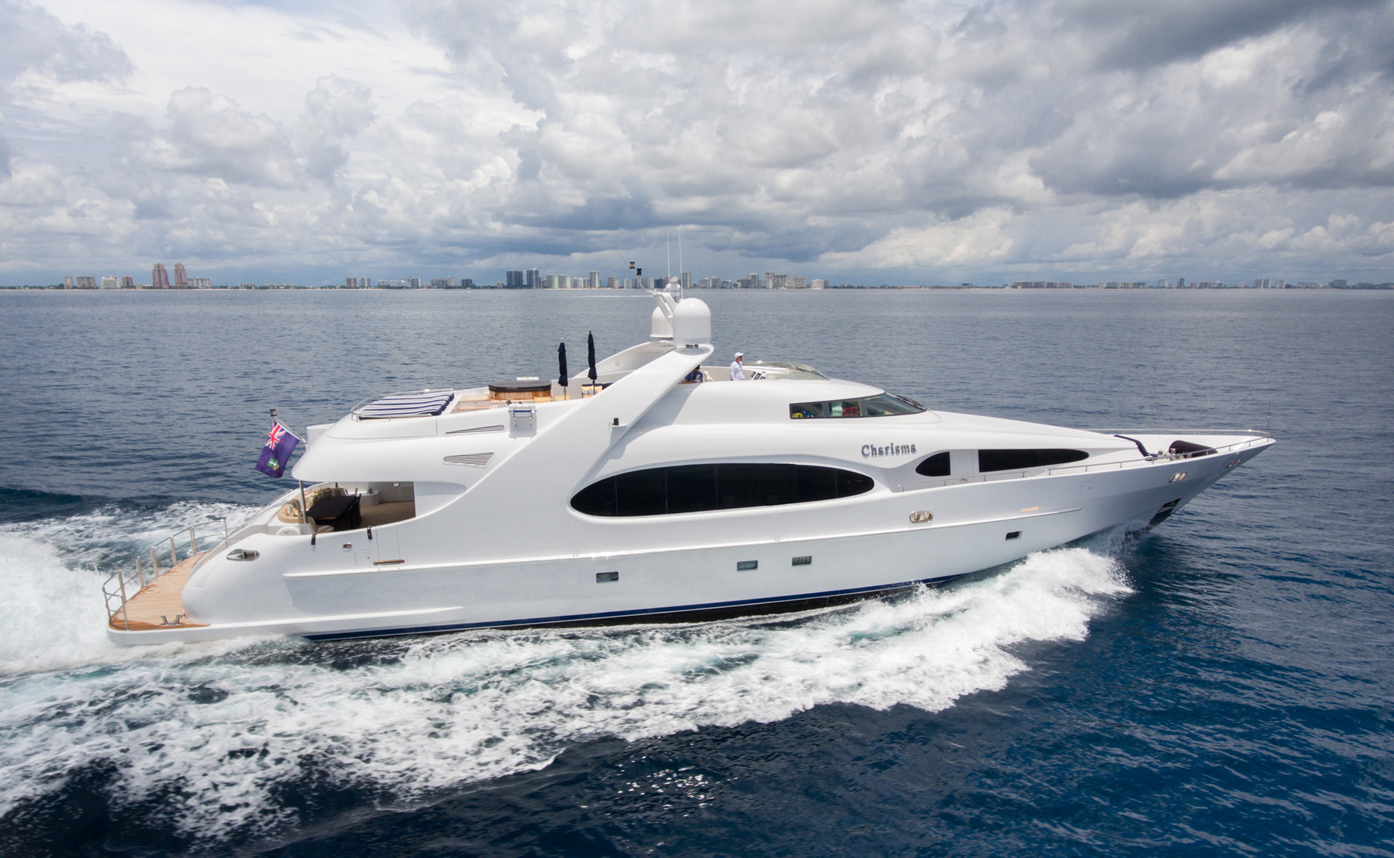 The 36.5m Danube Marine-built motor yacht CHARISMA launched in 2005 and refitted in 2015, is currently offering no delivery fees for late November to early January charters of a week or more, in the idyllic Bahamas. She features naval architecture by Frank Mulder and accommodates up to 8 charter guests, across 4 cabins.
