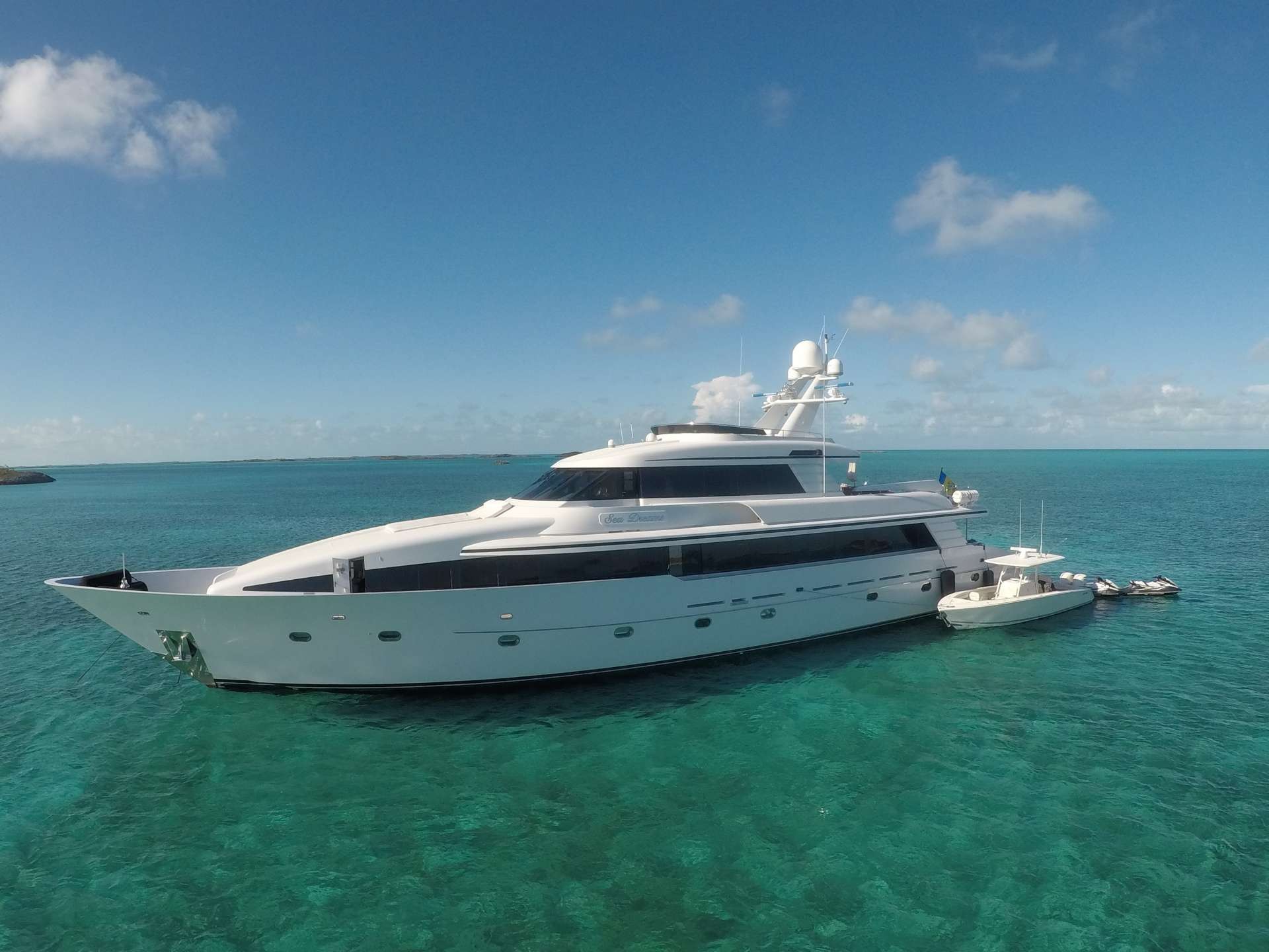 Motor yacht SEA DREAMS is offering no delivery fees this summer in the Bahamas, launched in 1995 by Northcoast Yachts and refitted in 2017, she measures 40.23m and accommodates 10 charter guests, in 5 cabins.