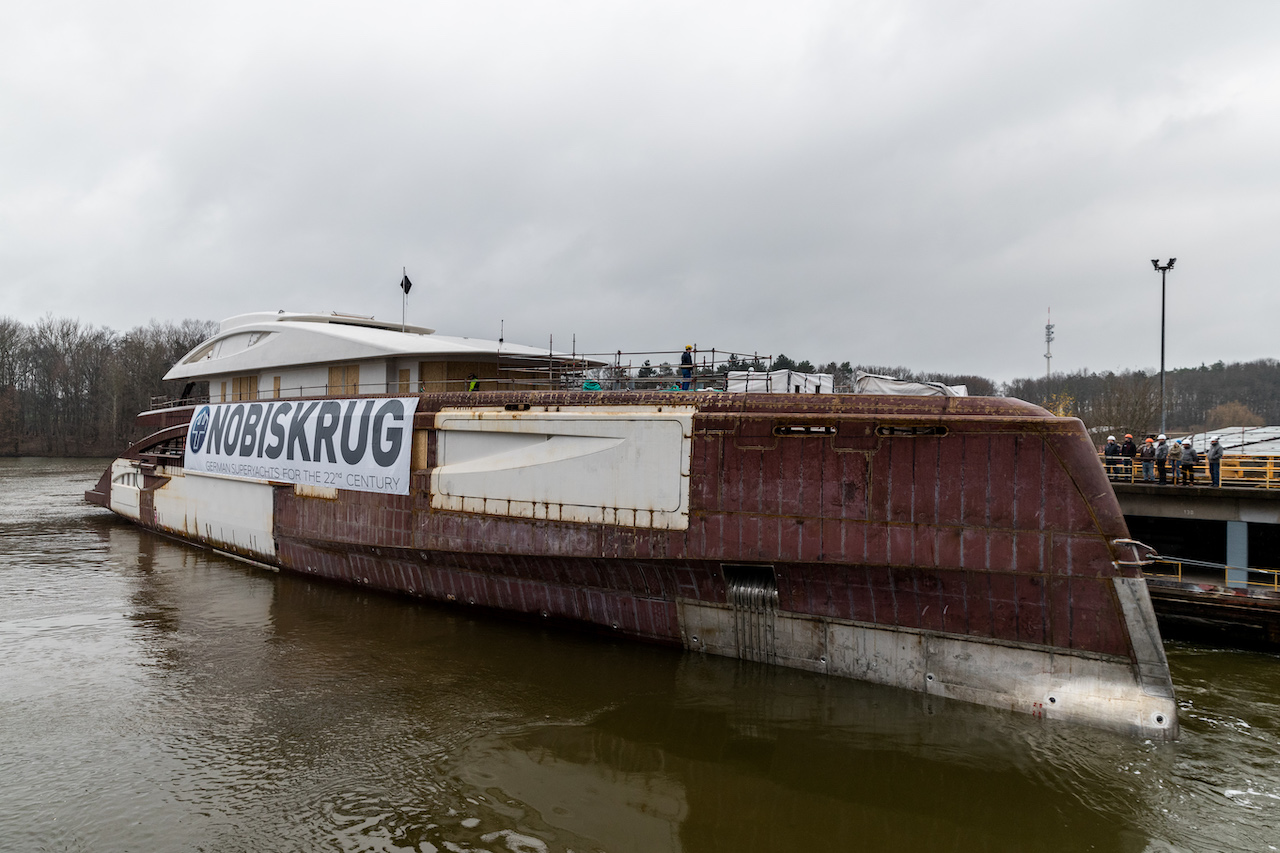 German shipyard Nobiskrug has announced a significant milestone in the construction of 77m/252.6ft superyacht PROJECT BLACK SHARK as the hull moves to the shipyard’s Rendsburg facility.