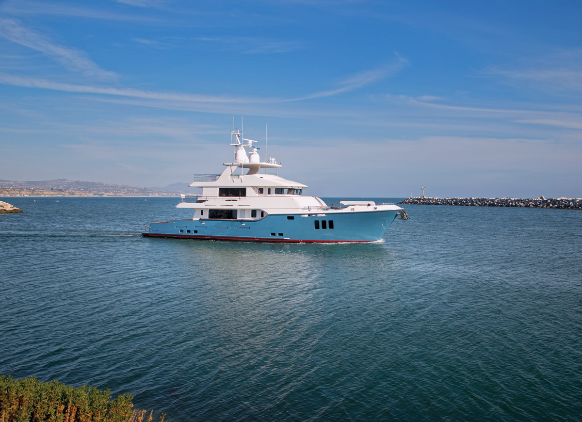 SERENITY boasts a classic and elegant profile, typical of Nordhavn yachts, while the added fishing cockpit was created by extending the transom and swim step by 36 inches. The interior has been highly customised with much of the owner’s input in order to create enough staterooms for his family and sufficient quarters for the crew, resulting in five cabins each featuring its own ensuite bathroom. There is also accommodation for a crew of four.