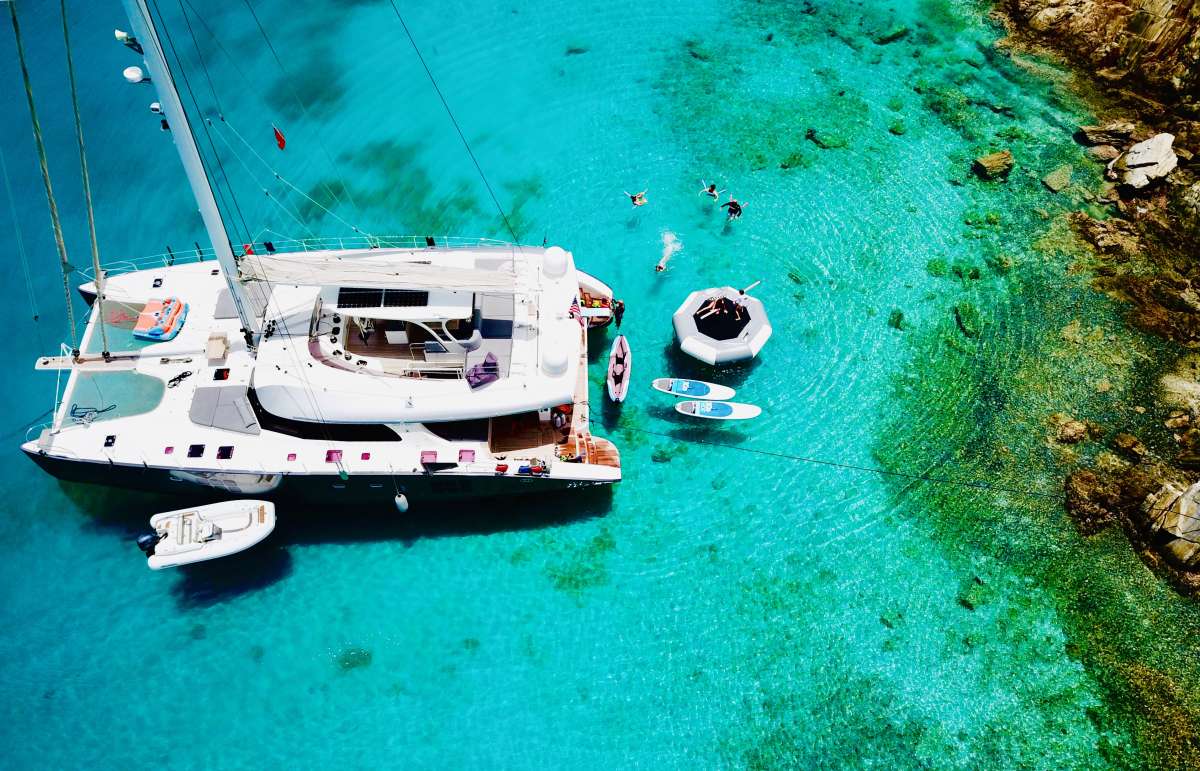 Beautifully maintained, with modern interiors and vast decks, PURELYBLU is a lovely choice in the smaller range of catamarans offering accommodation for up to 8 charter guests in 4 inviting cabins with ensuite facilities.