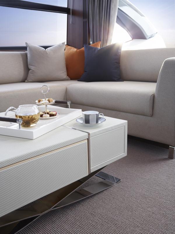 Dining and breakfast area – A curvaceous social design positioned next to the helm, the perfect place to start the day.