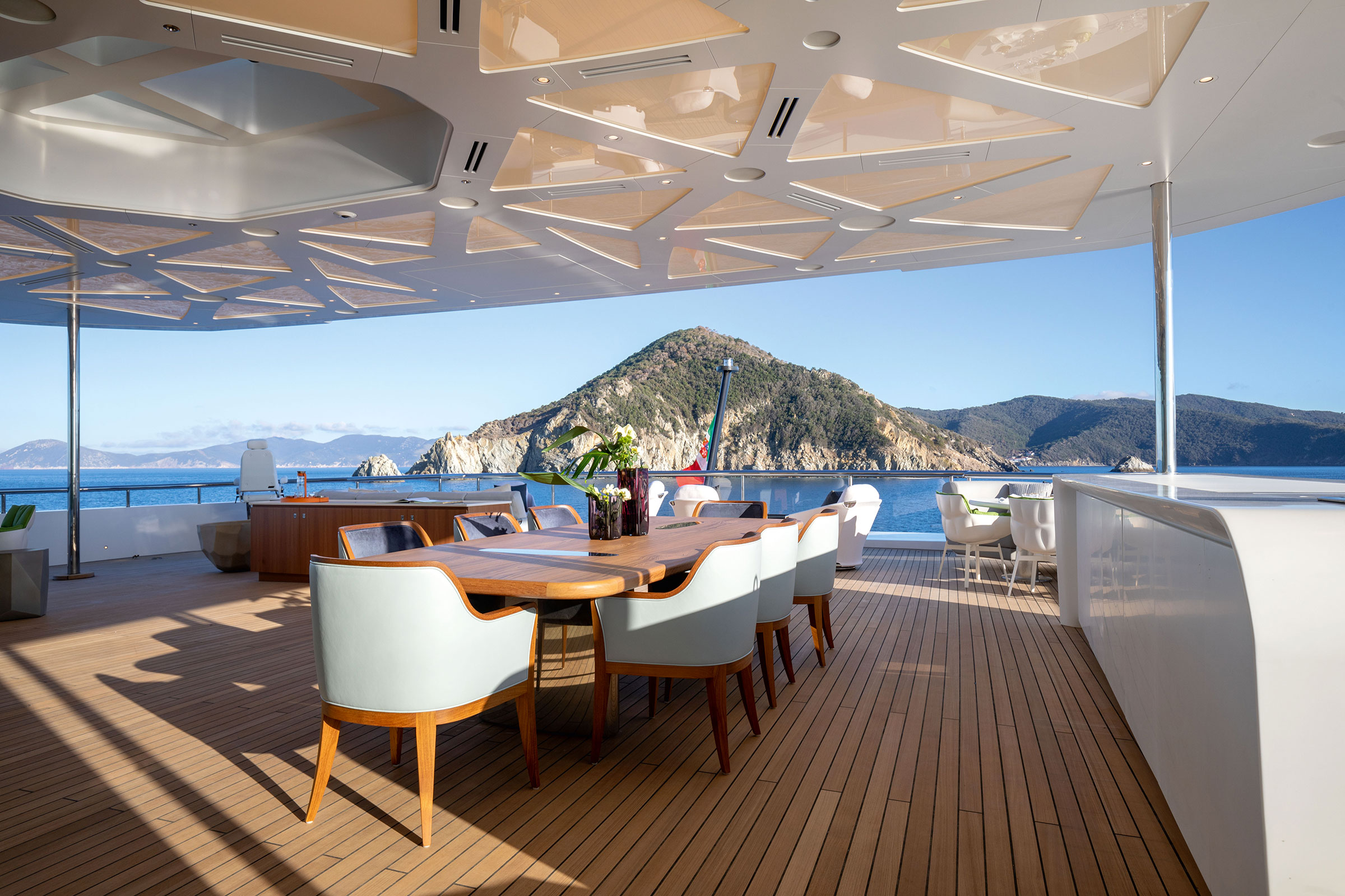 Outdoor lounging and sunbathing areas are abundant for the 27 guests, and for dockside events, there is plenty of space to host even more people on board. Whether there is a massive party in the making or just the Owner on board, the professional crew of 37 will keep everything running efficiently.