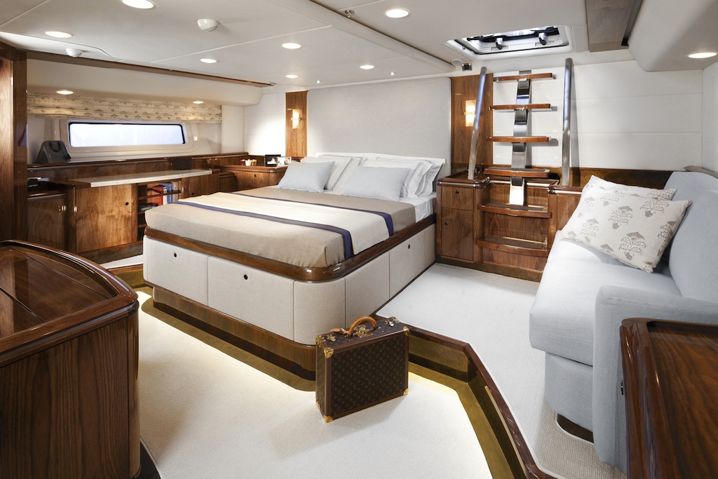 A six-cabin variant is also available, offering a fourth double guest cabin forward, in addition to the two crew cabins.