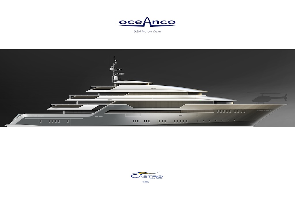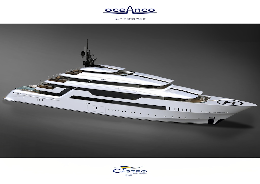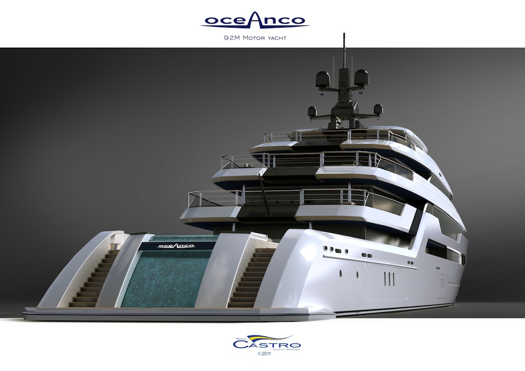 The UK based design company Tony Castro Yacht Design unveil their impressive 92M TONY CASTRO superyacht concept PA153 for OCEANCO. With the Monaco Yacht Show just around the corner, visitors will be able to visit Tony Castro Yacht Design and make further enquiries about this stunning PA153 OCEANCO 92M yacht by Tony Castro for Oceanco.