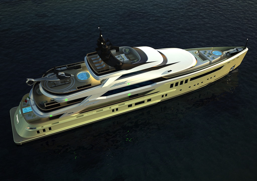 “Gemini 60 m superyacht, is a yacht that is characterised by the elegance of form and harmonic proportions between the parties. The central idea was to design a yacht boasting classic lines that would last over time, but at the same time I wanted Gemini to to be characterised by a contemporary look. The almost straight bow and the superstructure with some dark elements make this product look very aggressive. A yacht of 60m steel and aluminium, with almost straight forward, classic colours and landing strip for helicopter, Gemini is suitable for an owner who wants to reach his yacht at any time.”