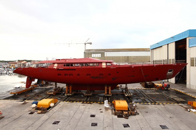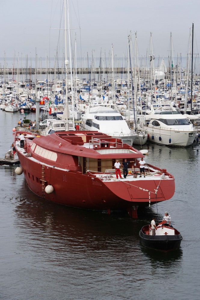 After signing the sales contract in August 2009, the aluminium hull and superstructure were completed at Perini Navi Group’s Turkish plant, Perini Istanbul – Yildiz, together with the hull turning operations in April 2010. After mating to the superstructure, outfit work will continue in the Perini Navi shipyard in Viareggio after being transported by sea.