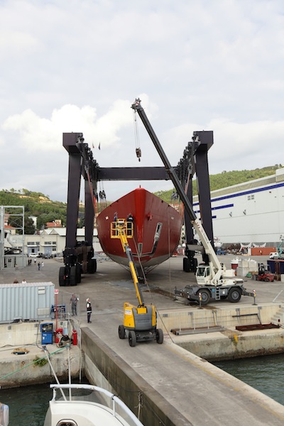 Luxury sailing yacht Sybaris, hull C2227 and the first in the 70m Perini Navi Series, arrived at La Spezia, Italy from where she will be launched in 2015.