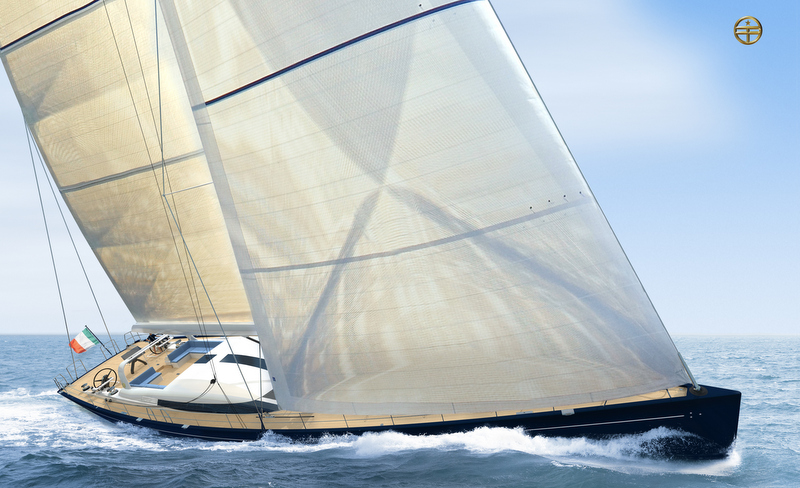 Superyacht C.2130 will mount laminated sails and will have a carbon fibre furling boom for performance and safety in all conditions. Hull and superstructure are in Sealium, a lightweight aluminium alloy that is highly corrosion resistant. Thanks to widespread use of latest generation carbon fibre in the boom, standing rigging, spreaders roll bar and helms, the yacht’s displacement is 160 tons while its GT is 171 tons. The yacht’s deck hardware will allow for competitive performance with limited crew.