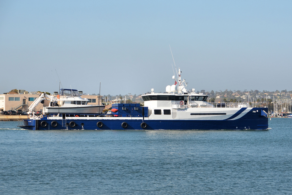 CharterWorld has received an image of the 50m Sea Axe support vessel OBERON leaving San Diego captured by Steve Roberts. She was built by Amels and launched in 2010. OBERON is the first vessel in the Fast Yacht Support market to make use of the Axe Bow and is capable of travelling at a top speed of 28 knots.