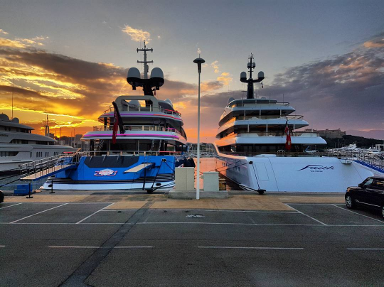 Madame gu 99m and faith 96m in Antibes both built by feadship. Photo credit @kyleloubser