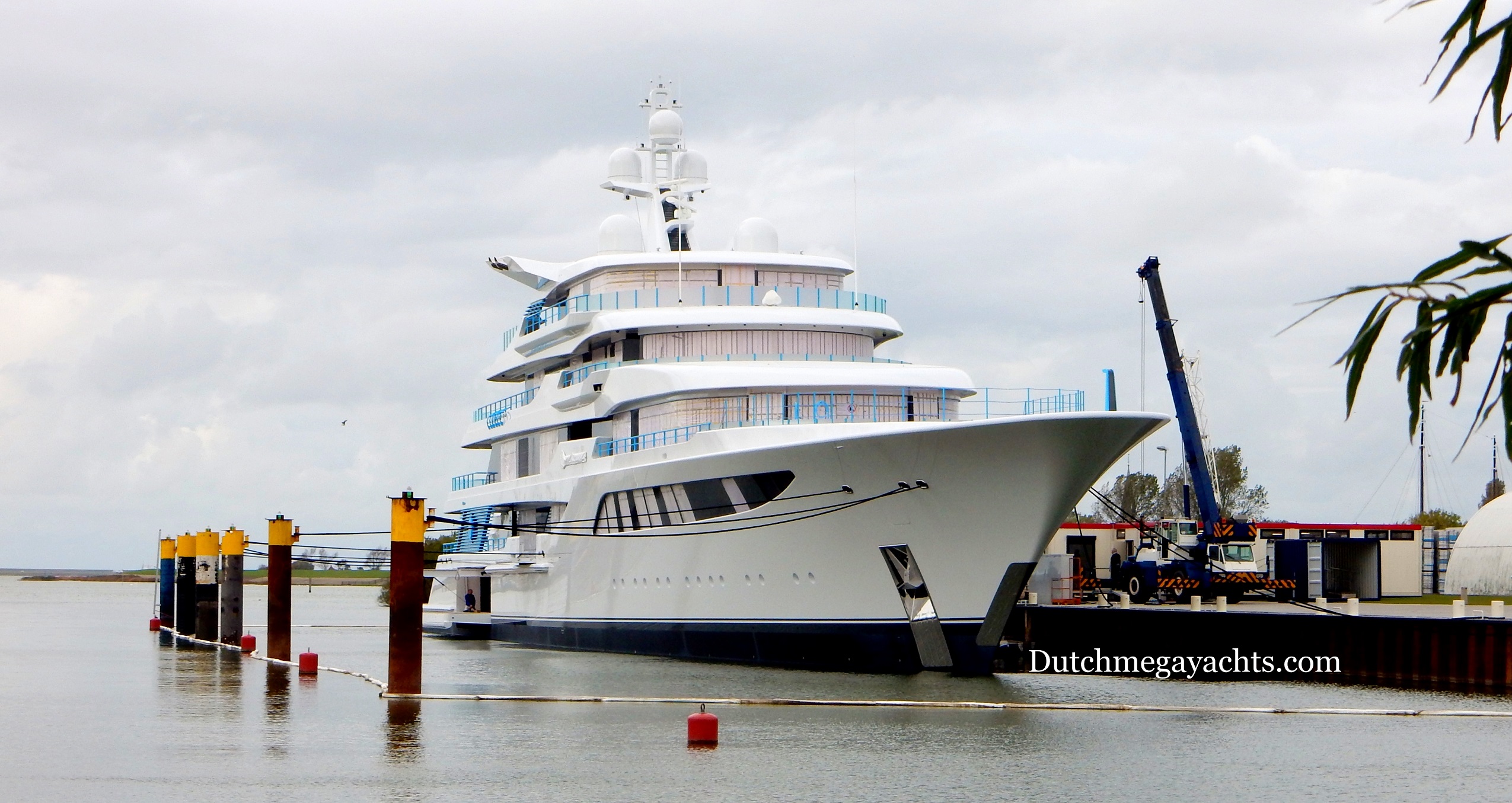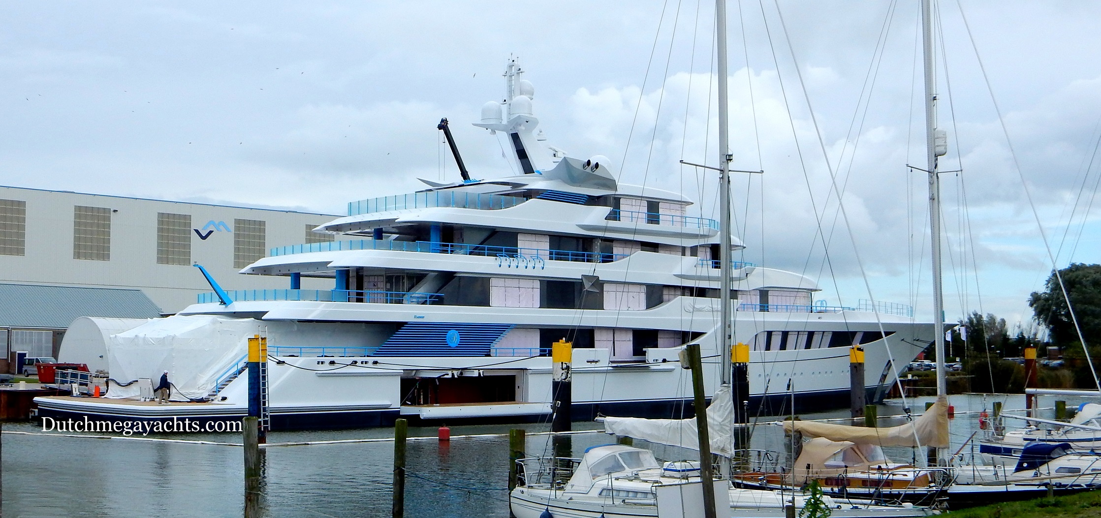 Photos of the 92,50m Feadship super yacht Royal Romance (hull 1005), moored at the Feadship De Vries Makkum shipyard in the Netherlands.