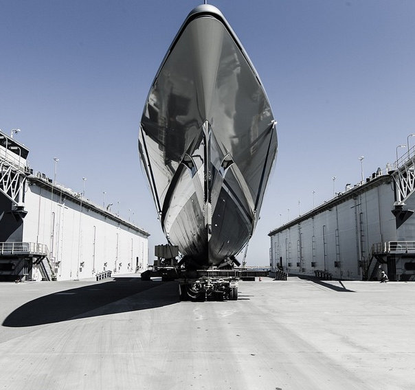 77m superyacht SilverFast (ex Suvretta) leaving her shed - Photo by Guillame Plisson and Silver Yachts