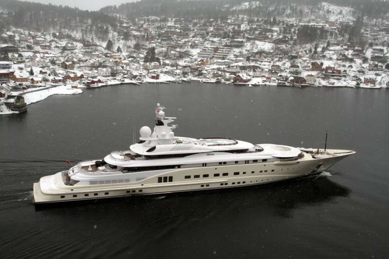 One of the largest yachts in the world, the 115m mega yacht Pelorus has been spotted a few years ago near Stathelle in Norway by Tomas Østberg-Jacobsen, a passionate yacht photographer. The magnificent Lurssen built PELORUS Yacht was designed by Tim Heywood for her original owner: a Saudi businessman. The informal yet luxurious, beach-house like interior was created by Terence Disdale.