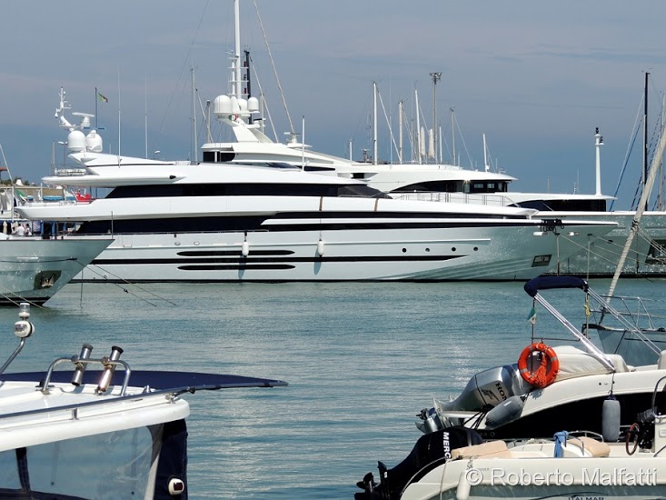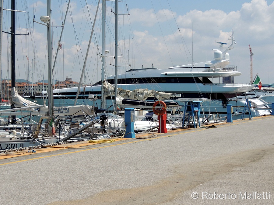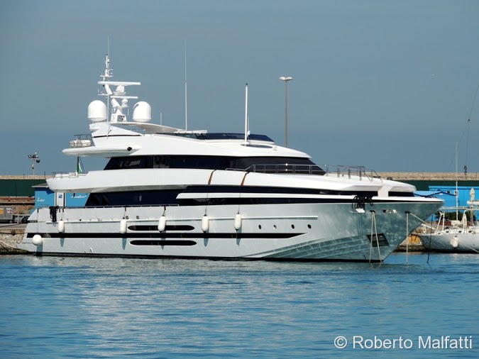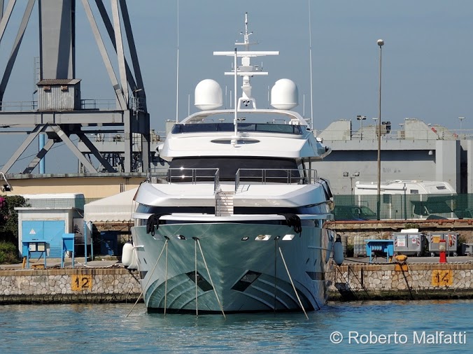 Built by the Italian shipyard Cantieri di Pisa and launched in 2012, the nearly 47m motor yacht Project 12 is an excellent high-performance yacht, from the yard’s Akhir range. Featuring naval architecture by the shipyard’s in-house team in collaboration with Arrabito Naval Architects, Project 12 yacht has striking exterior by Galeazzi Design and luxurious interior by Mark Berryman. The yacht is currently in the Port of Livorno in Italy and was photographed by Roberto Malfatti.