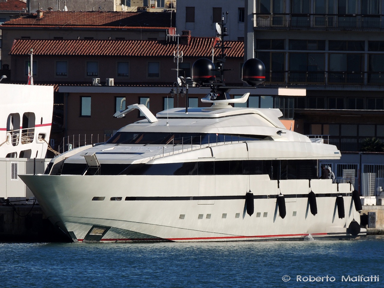 Superyacht LILIYA, a Sanlorenzo built 40-metre luxury motoryacht was captured at the port of Livorno on Friday by Roberto Malfatti.
