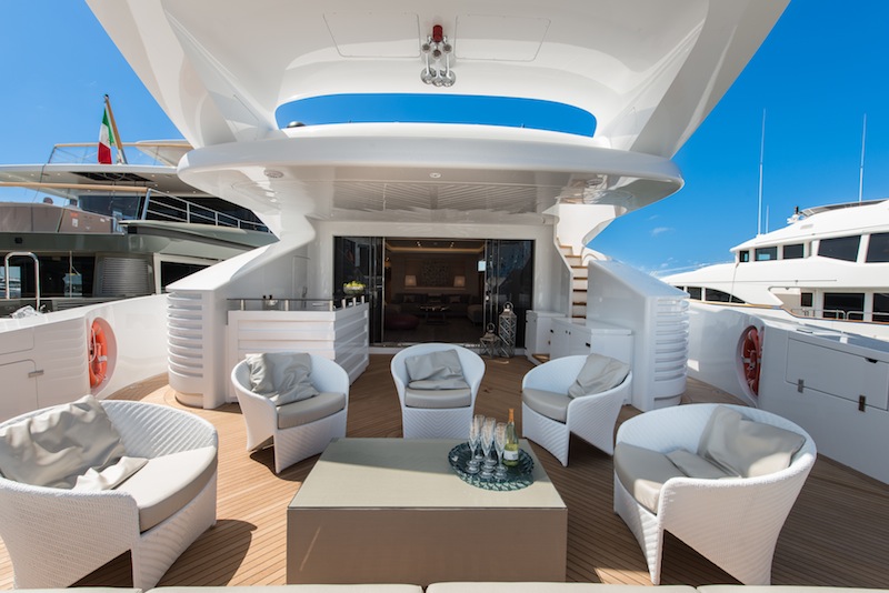 A private staircase leads to the outdoor area on the forward cockpit, which is at complete private disposal to the owner, with comfortable furnishings. On the right of the cabin there is a terrace looking onto the sea providing additional intimate area.