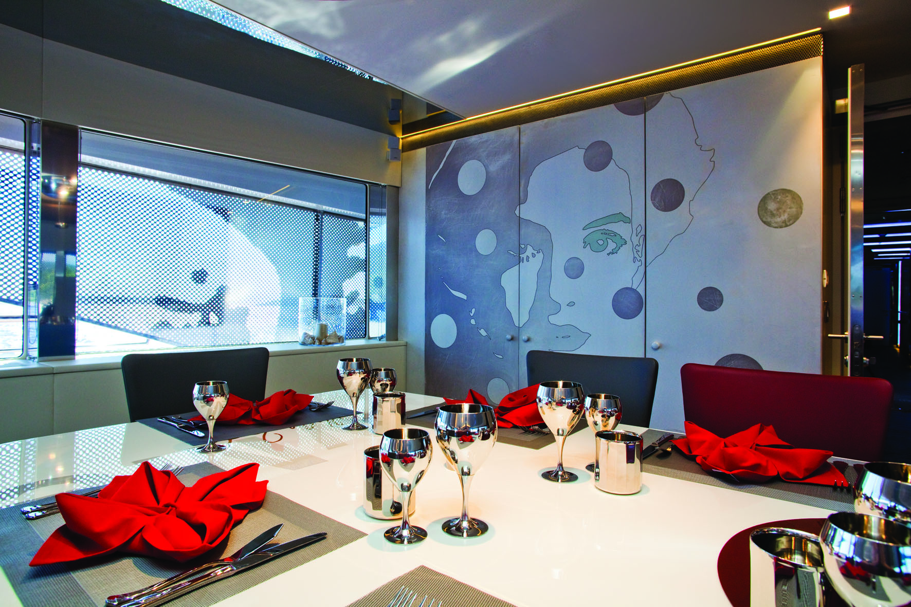 This dynamic looking motor yacht JoyMe will undoubtably be enjoyed by her Owner, but with her distinct exterior and interior design by Marijana Radovic, she could become a truly one-of-a-kind luxury charter yacht. You can read more about JoyMe’s exterior and interior design by Marijana Radovic of Standby here.
