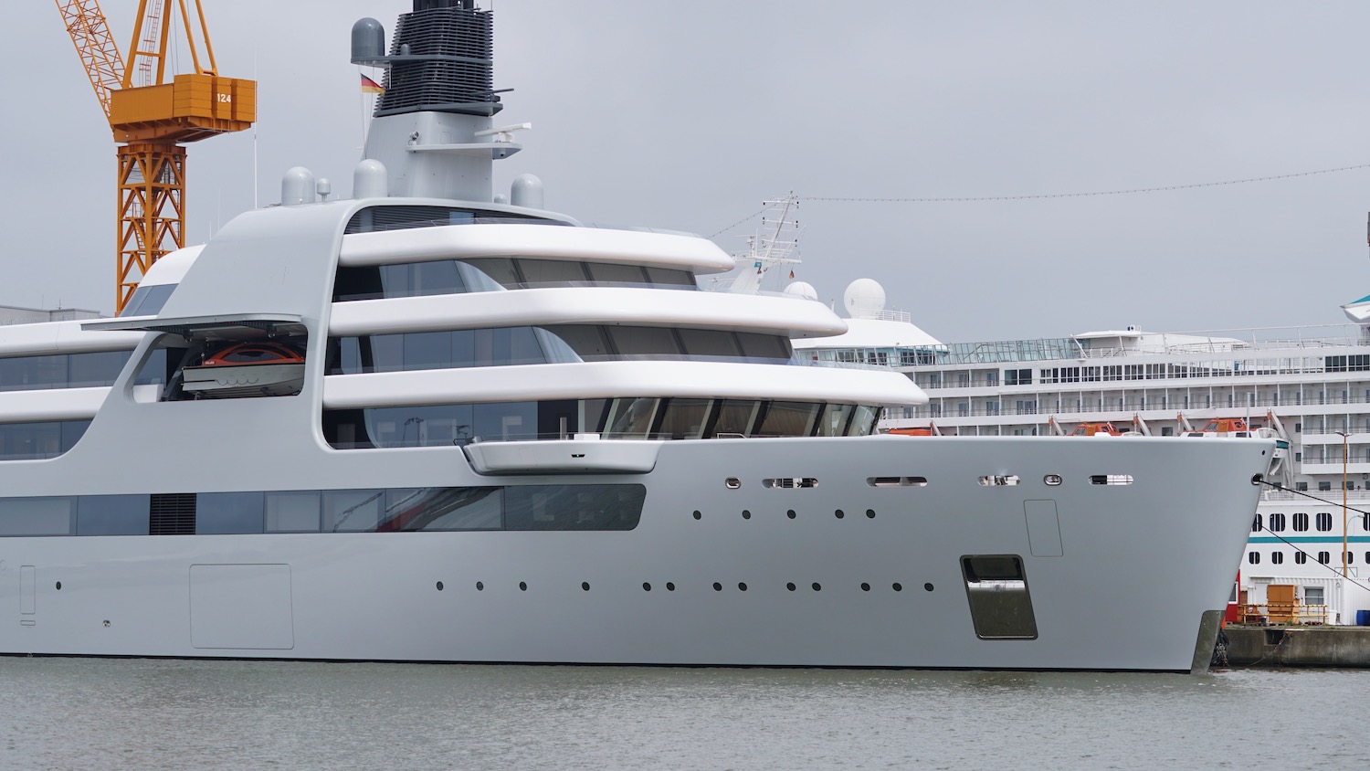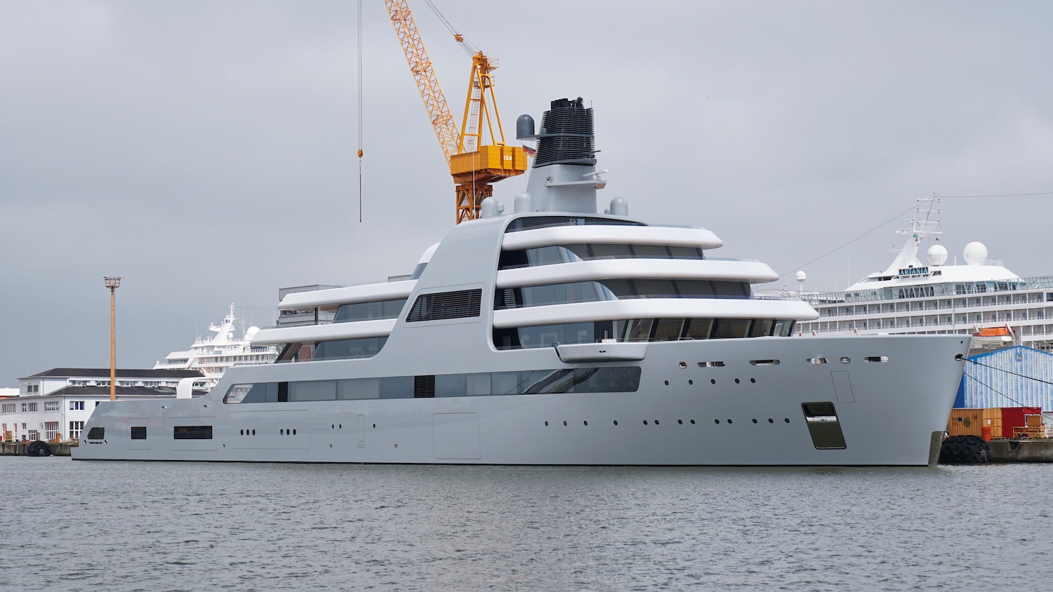 Superyacht enthusiast and yacht spotter DrDuu has captured the elegant 140m/459ft luxury yacht SOLARIS on camera at the Lloyd Werft Bremerhaven shipyard before her delivery.
