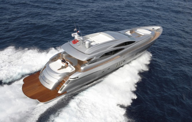 Pershing introduces its new Motor Yacht Pershing 92’, a new racy and modern model, with maximum comfort on board, ensuring continuity between the interiors and the exteriors and incomparable living spaces. Drawn by the Designer Fulvio De Simoni, is characterized by a slim and aggressive external profile, with tight lines that permit the enlargement of the internal volume, creating more room especially in the hall and the stern cockpit on the main deck. An absolute novelty lies in the choice of colour for the hull: white pearl, according to the latest pleasure boating trends. The sun deck of the Motor Yacht Pershing 92’ is one of the strengths of this new yacht. A wider deck, characterized by larger sizes, to ensure maximum relax and privacy on board. The accessibility to the sun deck has been improved, thanks to a wide staircase that facilitates access to the bridge. On the same sun deck there are also a semicircular modular sofa and a table, that can be lowered to sitting level, so as to form one large sundeck which can be protected by a shade, supported on carbon poles. At the bow, in front of the bridge, there is a big high-backed seat. The interiors feature a cockpit, furnished with two sofas facing one another, a big table and a mobile bar. This area seems to extend into the big upper hall, where life on board is fully expressed and where natural light flows in generously through the apertures of the big lateral windows. From the bow of the MY Pershing 92’, one can access the hall through a foldaway glass door, designed in collaboration with Besenzoni, made up of two independent sections, equipped with electro-hydraulic handling, which slide downwards until they vanish. The elegance of the furnishing is the result of the collaborative teamwork of two historic Made in Italy labels: Poltrona Frau, which has designed and realized the pilot house, all the seating and all the details of the internal furnishing, and ErnestoMeda, which realized the kitchen. The below deck, which can be accessed through a comfortable staircase behind the pilot’s seat, consists of 4 cabins: a full-beam ship owner suite, the vip cabin at the bow and two guest cabins with two side by side beds and an en-suite bathroom. Accessible from inside and outside, there is an area at the stern that has been equipped as crew lodging. It is made up of two cabins with bathrooms, and they are linked to the kitchen. Technical details: not provided.