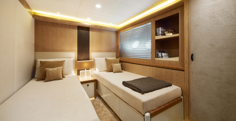 The third asset: integrated customisation. The design and construction phases are intended to offer a huge choice of layouts to satisfy a wide range of demands. So it is possible to cater for someone who, for example, wants a “presidential” master cabin, or someone else who would rather have more cabins. So boat owners’ preferences can be satisfied, without any need to start designing each boat from scratch. This unusual benefit is possible because of the customer driven corporate structure. This ability to customise layouts, which is integrated in the architecture of the boat and the industrial processes used, means that there are almost limitless possibilities for personalising the end product.