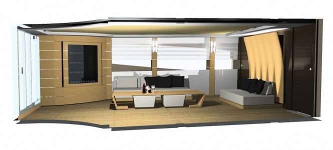 The fly looks like a living suspended area, where guests can relax on the spacious sundeck.