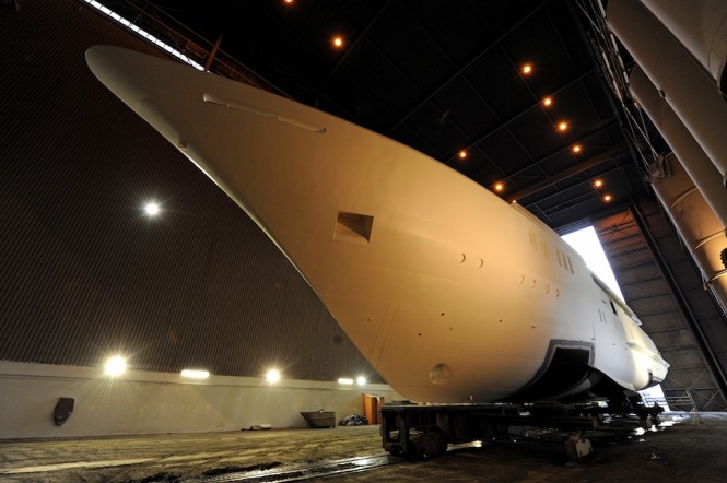 The shed features a clear height of 26m above N.A.P. which allows for almost any motor yacht to drive into the dock without dismantling or removing the top antennae mast. The dock can also be divided into separate wet/dry sectors allowing continuation of the final commissioning to take place still fully covered and heated.