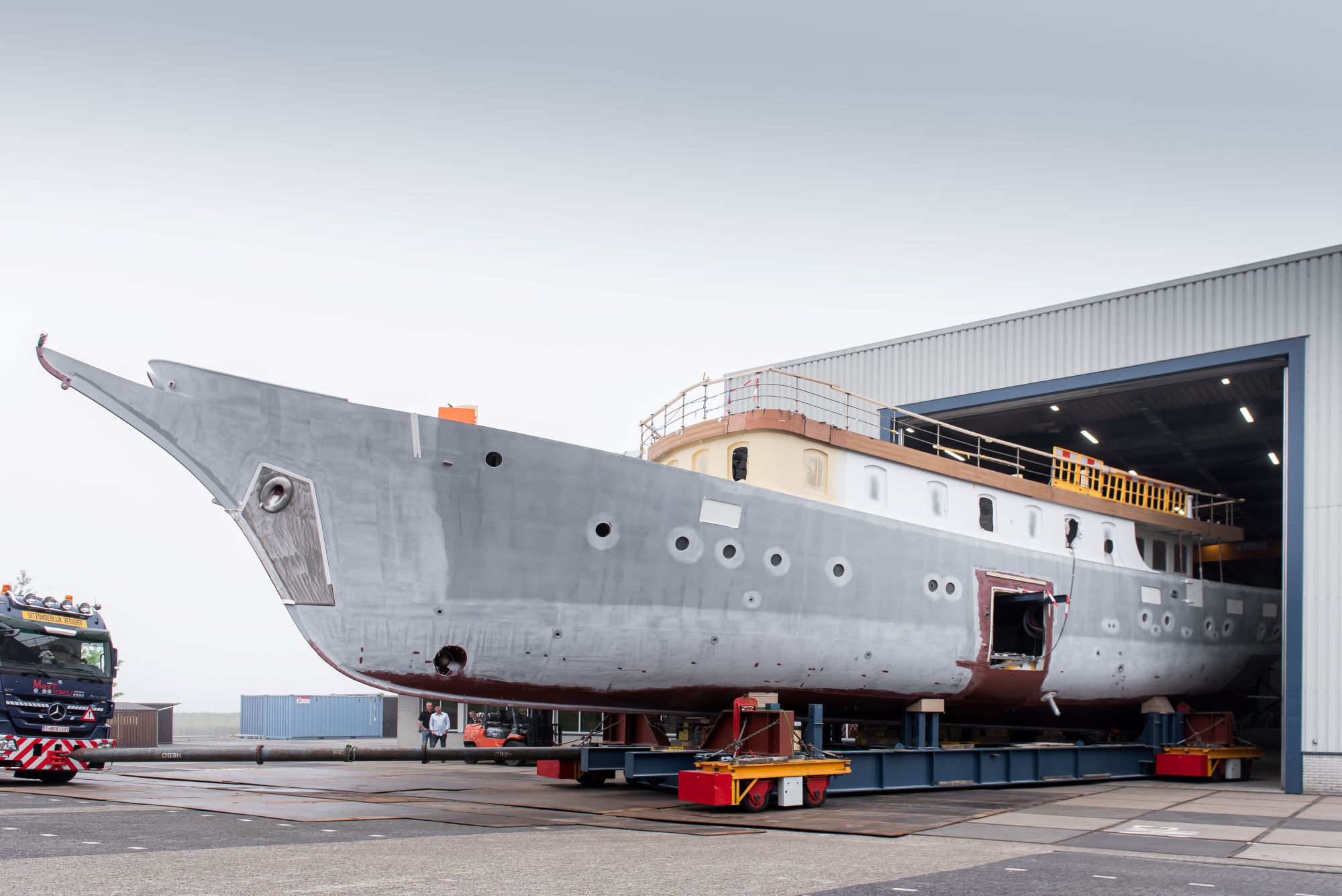 In January 2021, ATLANTIDE arrived at the Huisfit shipyard from the US for repairs and modifications. By November 2023, she sailed away, transformed and ready for her next century of service. The project was initiated by her current owner, Jim Clark, who has previously built three sailing yachts at Royal Huisman. Clark and his wife, Kristy, saw her as a charming accompaniment to their J Class racing yacht, HANUMAN.