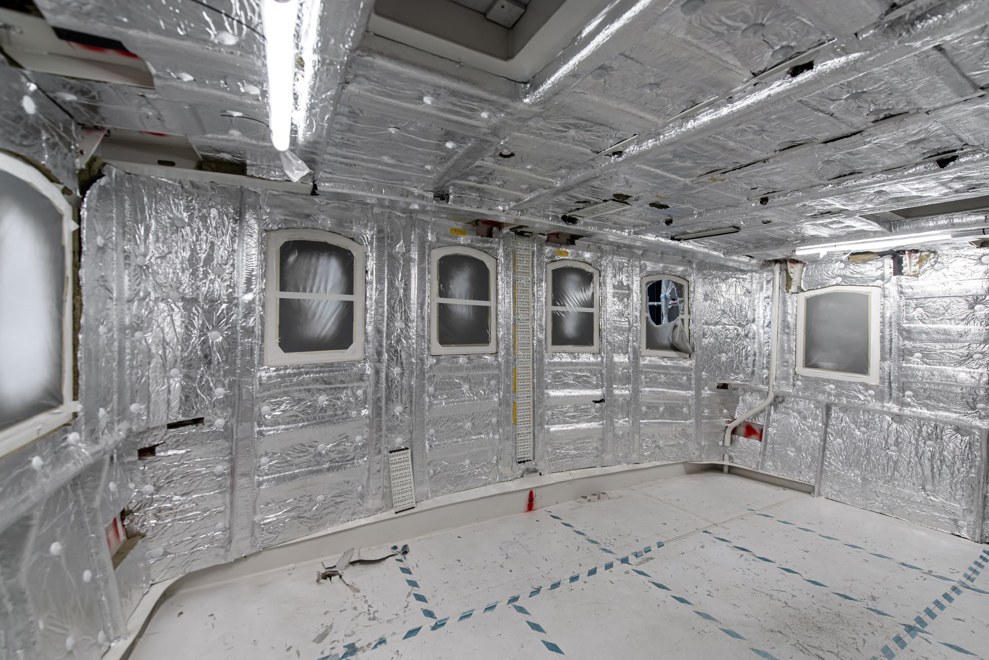 Upon arrival, the extent of the work required became clear. The hull and deck were found to be dented and deformed, and the interior suffered from ongoing deck leaks. The refit quickly turned into a full rebuild, with the team using “sailboat thinking” to fit new equipment and systems in the limited space available.