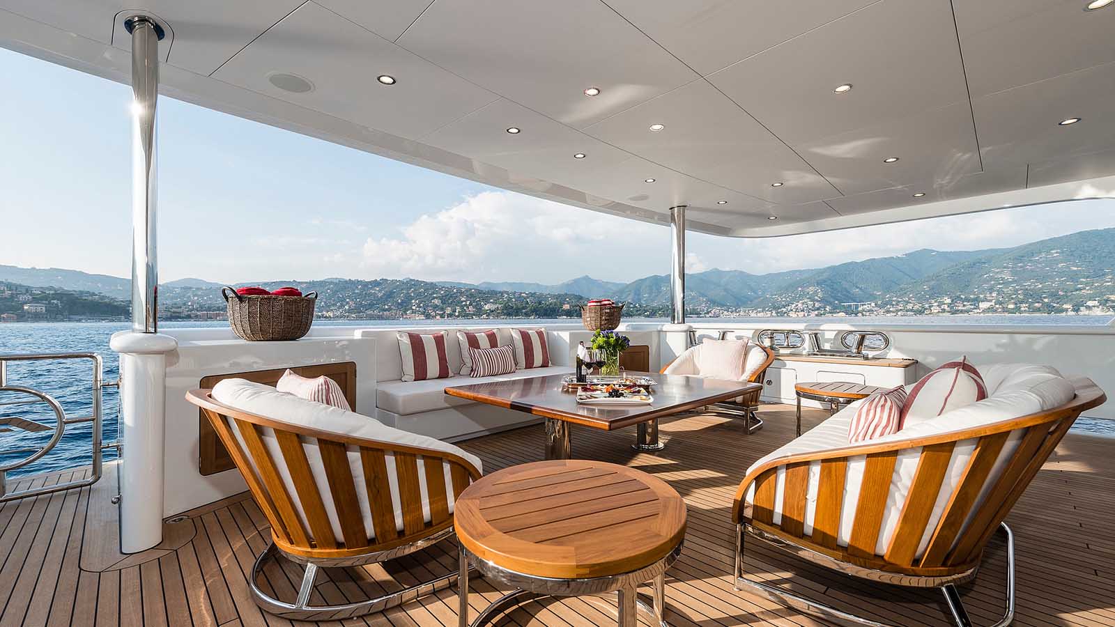 The outdoor areas are just as refined, and the group can spend their days dining or lounging in the breeze, admiring the white cliffs amongst the Ionian Islands or the city lights of Naples glittering off the sea. Sunbeds are abundant, and the Jacuzzi on the sundeck is a tempting place to relax with a cocktail from the bar.