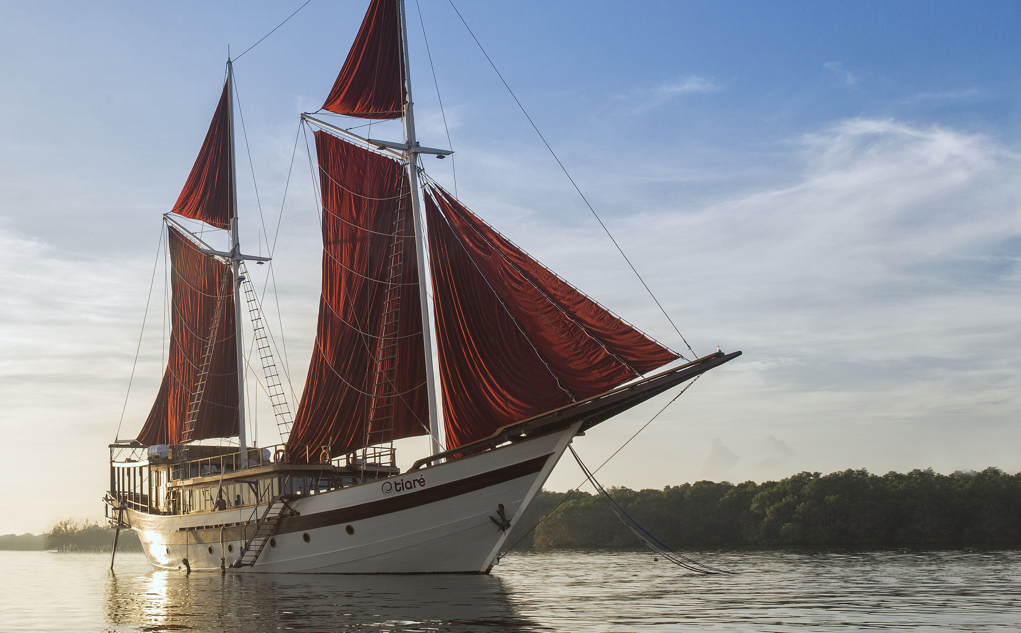 There are few scenarios as romantic as an escape aboard a wooden sailing yacht for an adventure in the sunshine and 2016-built 47m/154ft TIARE is an opportunity to have her atmospheric surroundings all to yourselves or share with up to 14 guests across six stately cabins.