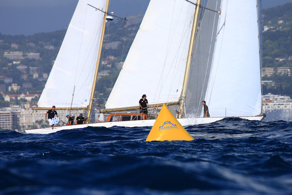 Once more, the weather took central stage in Cannes during the morning hours, with huge, grey and menacing clouds hovering over the city and the race village. But, as it happened yesterday, a heavy shower gave way to a bright sun, blue skies and a variable wind that took some time to set in onto the race course. The Race Committee thus opted for a rectangular coastal course with the first mark just off the Lérins Islands, a downwind tack to Théoule, a long reaching to Mandelieu to finish upwind close to the marina entrance.