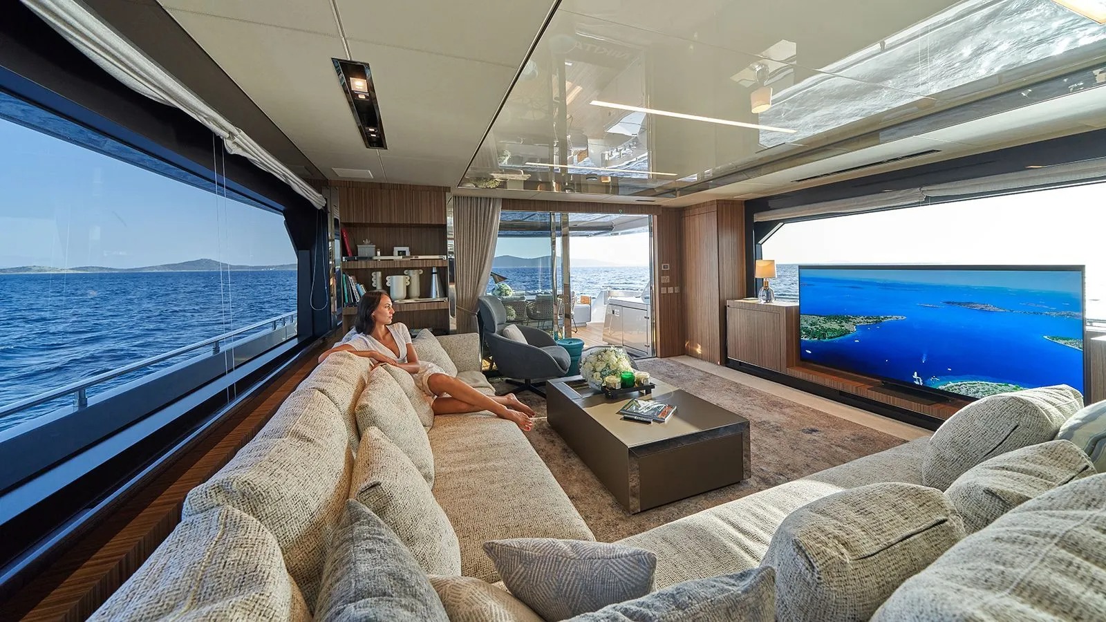 There is room on board for up to 10 guests while cruising, and overnight the accommodation sleeps a total of 8 guests in 4 en-suite cabins: 1 Master suite, 2 double cabins and 1 twin cabin. There is also a gym with en-suite facilities that can be converted to sleep two children. Throughout the cruise, all guests will receive first-class service from the expert crew of 5.